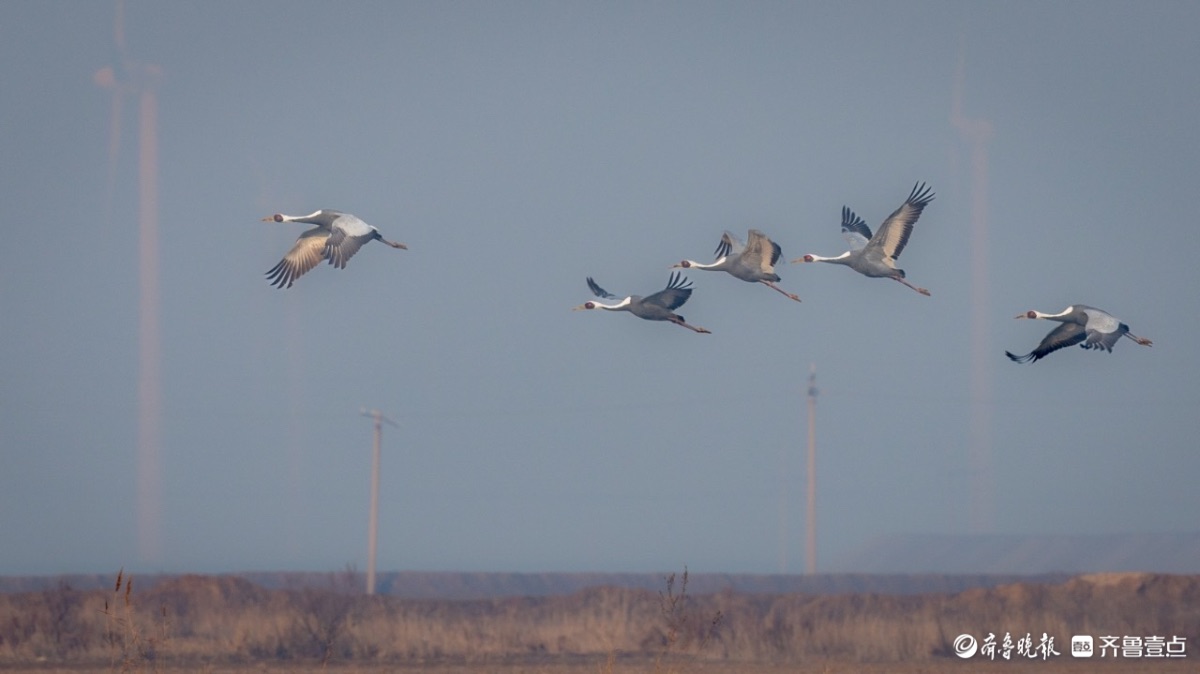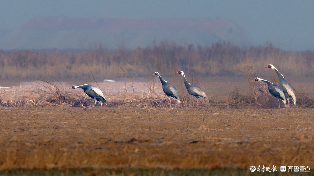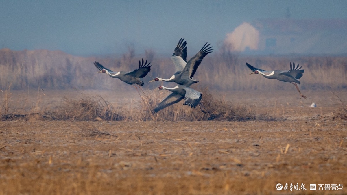 冬日的东营黄河湿地麦田,是白枕鹤的天然驿站。镜头里,它们或静立麦田勾勒出静谧的生态画卷,或展翅飞翔划破雾蒙蒙的天空,动静之间,尽是生命对这片土地的眷恋。张清摄