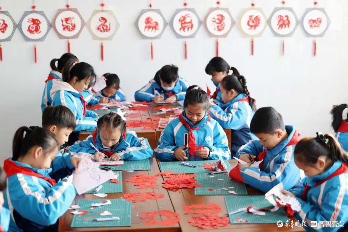 近日,临沂市郯城县第三实验小学开展“传统文化进校园非遗剪纸迎新年”活动。孩子们在临沂市非物质文化遗产沂蒙剪纸代表性传承人谢瑞芳的指导下学习剪纸艺术,为即将到来的新年增添别样的文化韵味。张春雷摄