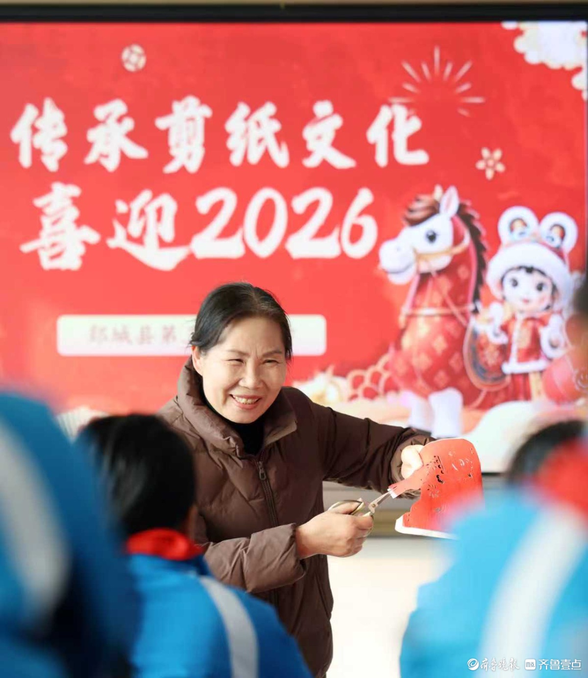 传统文化进校园, “非遗”剪纸迎新年摄影 | 2026-01-01 12:52:40 微信扫码扫码下载客户端近日,临沂市郯城县第三实验小学开展“传统文化进校园 非遗剪纸迎新年”活动。孩子们在临沂市非物质文化遗产沂蒙剪纸代表性传承人谢瑞芳的指导下学习剪纸艺术,为即将到来的新年增添别样的文化韵味。 张春雷 摄责任编辑:王媛