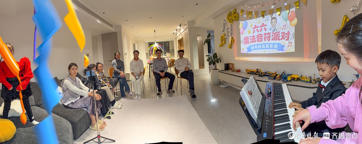 今视角 | 萌娃家庭新年音乐会大众报业·齐鲁壹点 2026-01-01 12:53:4512月31日晚,在济南五岁半的六六家中,一场 “魔法音符” 主题新年音乐会温馨启幕。客厅饰满音符气球与星星拉花,六六身着小西装,与钢琴老师郑爽合奏《新年好》等五首曲目,稚嫩旋律让亲朋好友们笑意满盈。 王剑 摄责任编辑:王媛