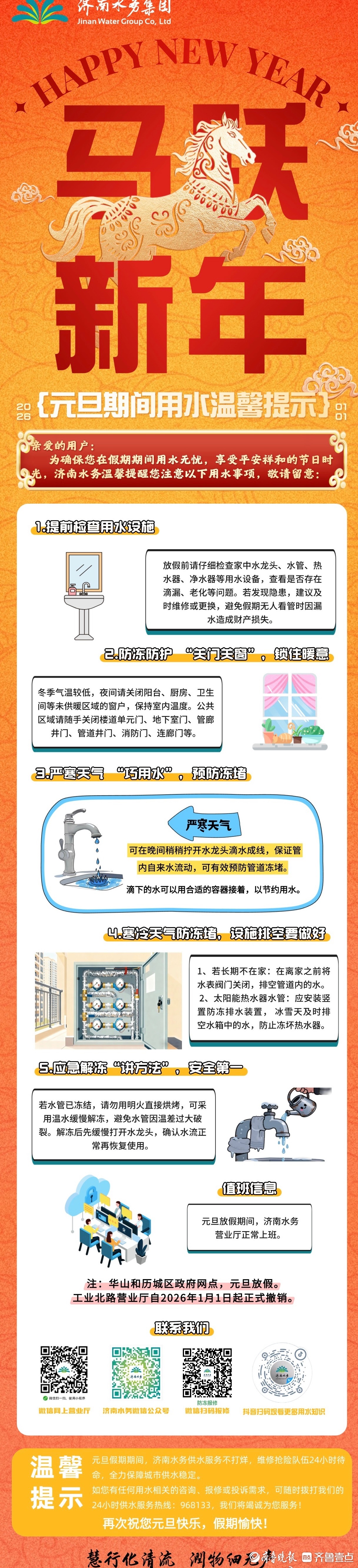 济南水务温馨提醒:元旦期间用水敬请留意