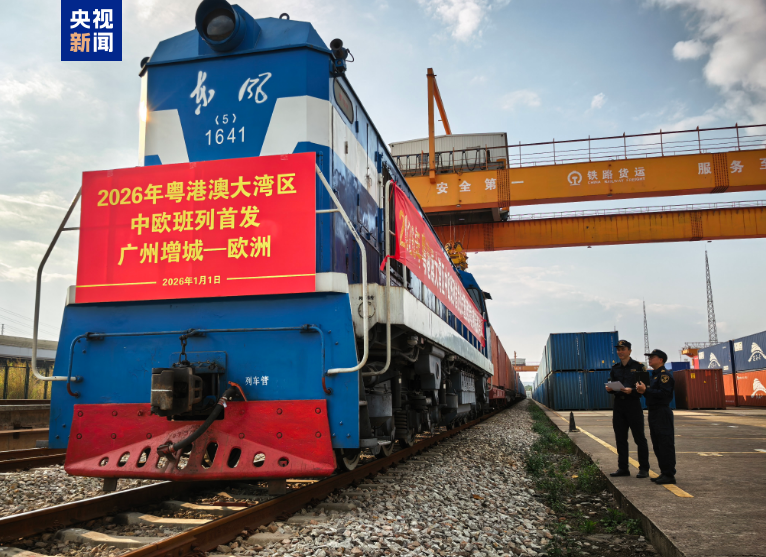 记者从黄埔海关获悉,1月1日上午,2026年粤港澳大湾区首列中欧班列自广州东部公铁联运枢纽(增城西站)发出。该趟班列共搭载110个标准集装箱,货值约2000万元,经霍尔果斯口岸出境,预计14天后抵达波兰马拉舍维奇。