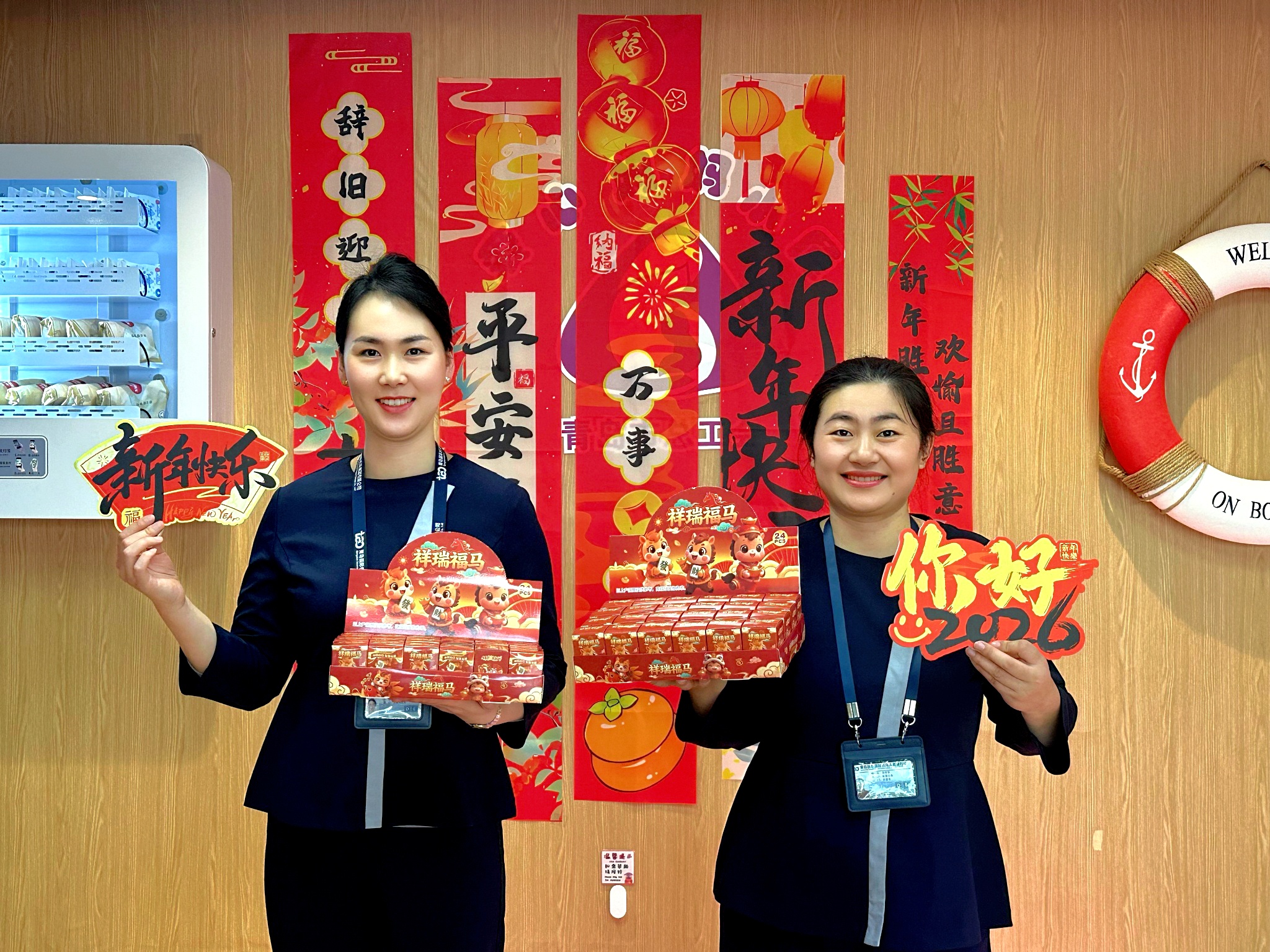 在出发大厅,特殊旅客爱心休息区、K岛值机区为旅客送上U型枕、行李牌等文创小礼品,把新年的祝福悄然放进旅客行囊。安检现场,志愿者在国内待检区精准分流旅客,引导特殊旅客快速通过爱心通道,16号、19号家庭通道同步开启,为亲子家庭提供更加高效、友好的通行体验。国际旅检待检区内,新年祝福与过检知识同步“上线”,小礼品与贴心讲解相伴,助力旅客轻松、顺畅过检。