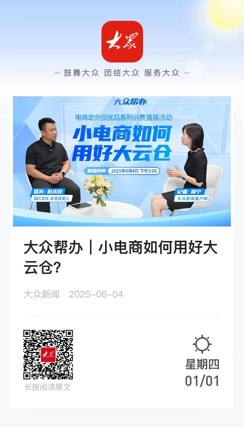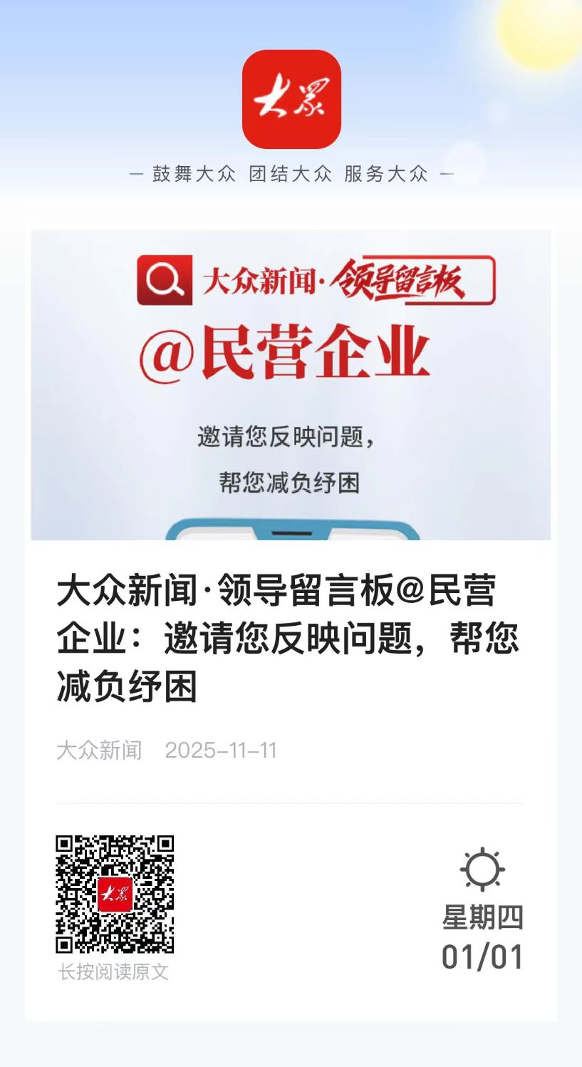 依托大众新闻客户端帮办频道、“领导留言板”及企业联络群,广泛征集企业诉求,设立“营商·帮办”频道专题,打造“营商环境看实招”“跟着企业去办事”等品牌内容栏目,开展“一起益企”行动,提供政策宣讲、疑问解答直播30余场次,解答企业疑问200余条,覆盖超20万人次。