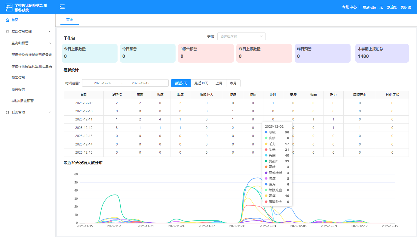 为打破学校传染病症状监测(晨午检、因病缺勤及病因追踪登记等)手动统计依从性差、效率低下、预警信号发现不及时等难点、堵点,区卫健局牵头开发智慧化学校症状监测预警系统,依据相关法律规范及区域特点制定个性化预警响应模型,并内设全区症状监测趋势分析,为传染病监测预警及风险评估提供有力数据支撑。区卫健局联合部分高校、中小学及幼儿园,深入推进学校症状监测预警试点应用,每日采集学生发热、腹泻等症状监测及因病缺勤等数据。针对流感、病毒性腹泻、手足口病等高发传染病症候群,设计标准化预警规则,结合因病缺勤数量变化趋势等进行风险早期识别和自动预警,将预警关口平均提前2-5天,变“事后处置”为“事前洞察”。