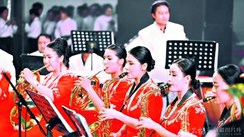 2025年12月31日晚,演员在和田地区洛浦县举办的跨年音乐晚会上演奏《保卫黄河》。 买买提艾力·艾尼瓦尔摄