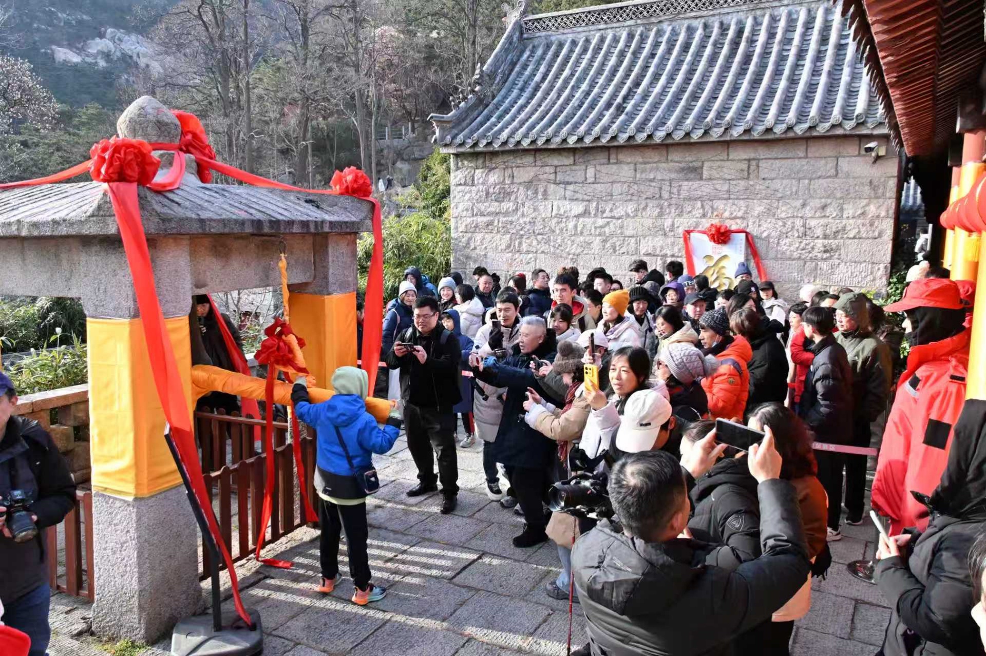 在“非遗雅韵·柳腔贺福”板块,青岛市级非遗峪夼柳腔经典折子戏精彩上演。质朴婉转的唱腔、地道的乡音乡情,让游客在非遗雅韵中感受传统文化魅力,体悟“家和万事兴”的美好内涵。太平宫、狮子峰沿线,“鸣钟祈福·狮峰祈愿”活动温情开展。千年太平晓钟悠扬鸣响,游客攀登狮峰迎新祈福。打卡“李白游崂山”人形立牌,感受“劳山餐紫霞”的诗意山海。声声钟鸣寄心愿,步步登高迎美好,游客们在山海之间许下新年期盼,定格美好瞬间。