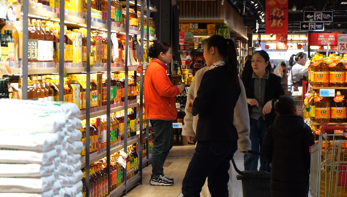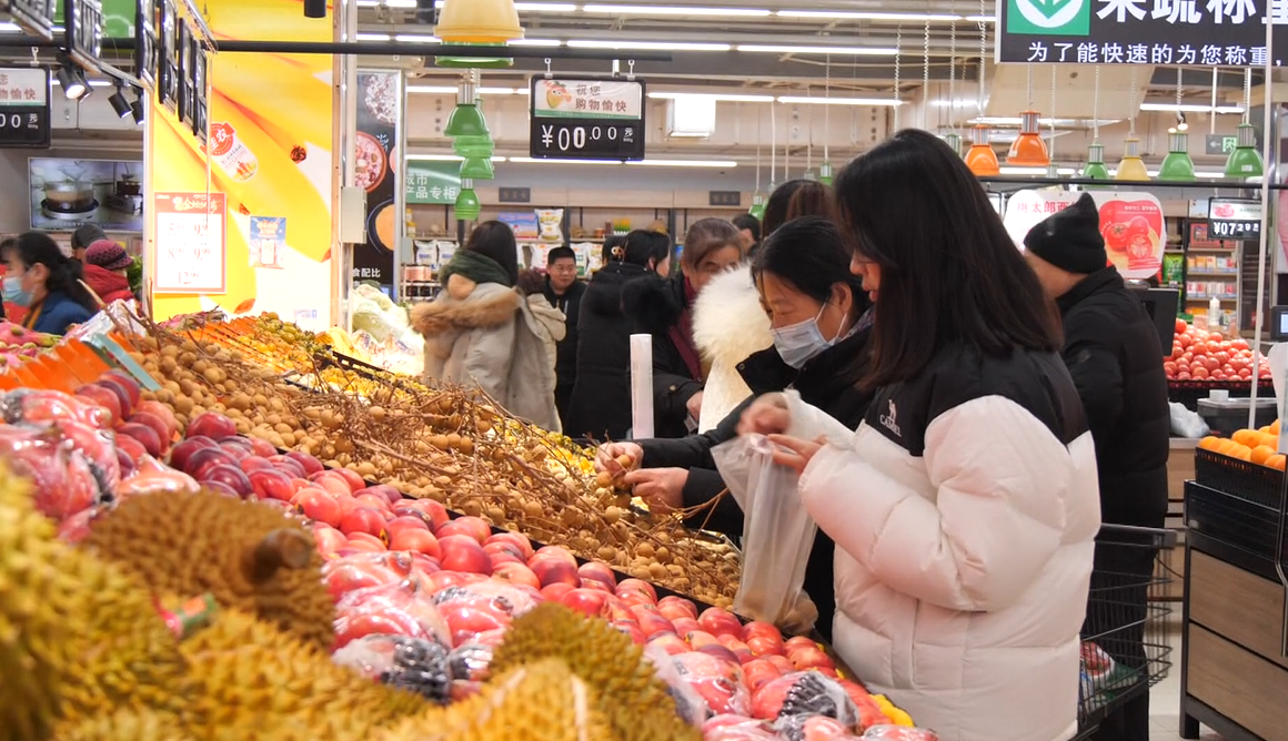 走进新合作购物中心超市内,年货专区早已布置到位,红彤彤的生肖吉祥物、福字挂满货架,坚果礼盒、腊味特产、进口水果等商品一应俱全,市民们推着购物车精心挑选,脸上洋溢着幸福的笑容。