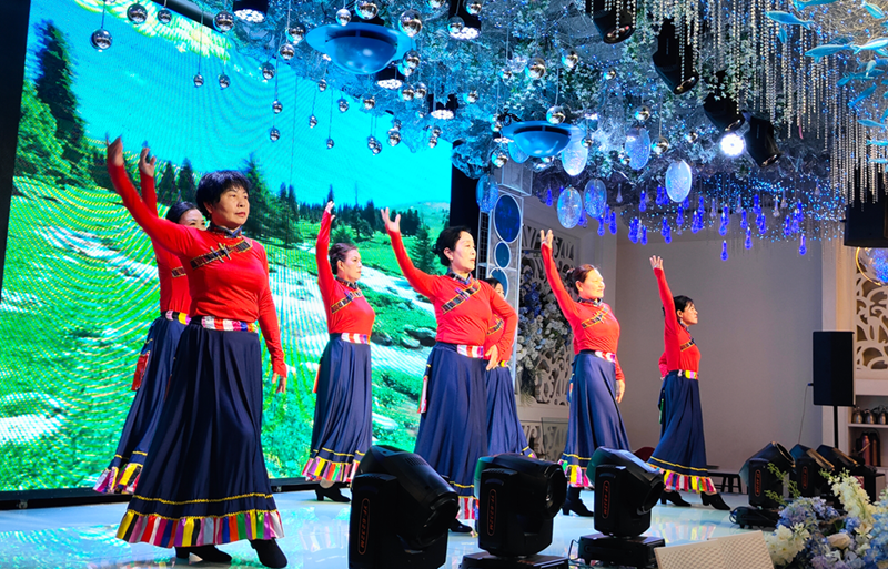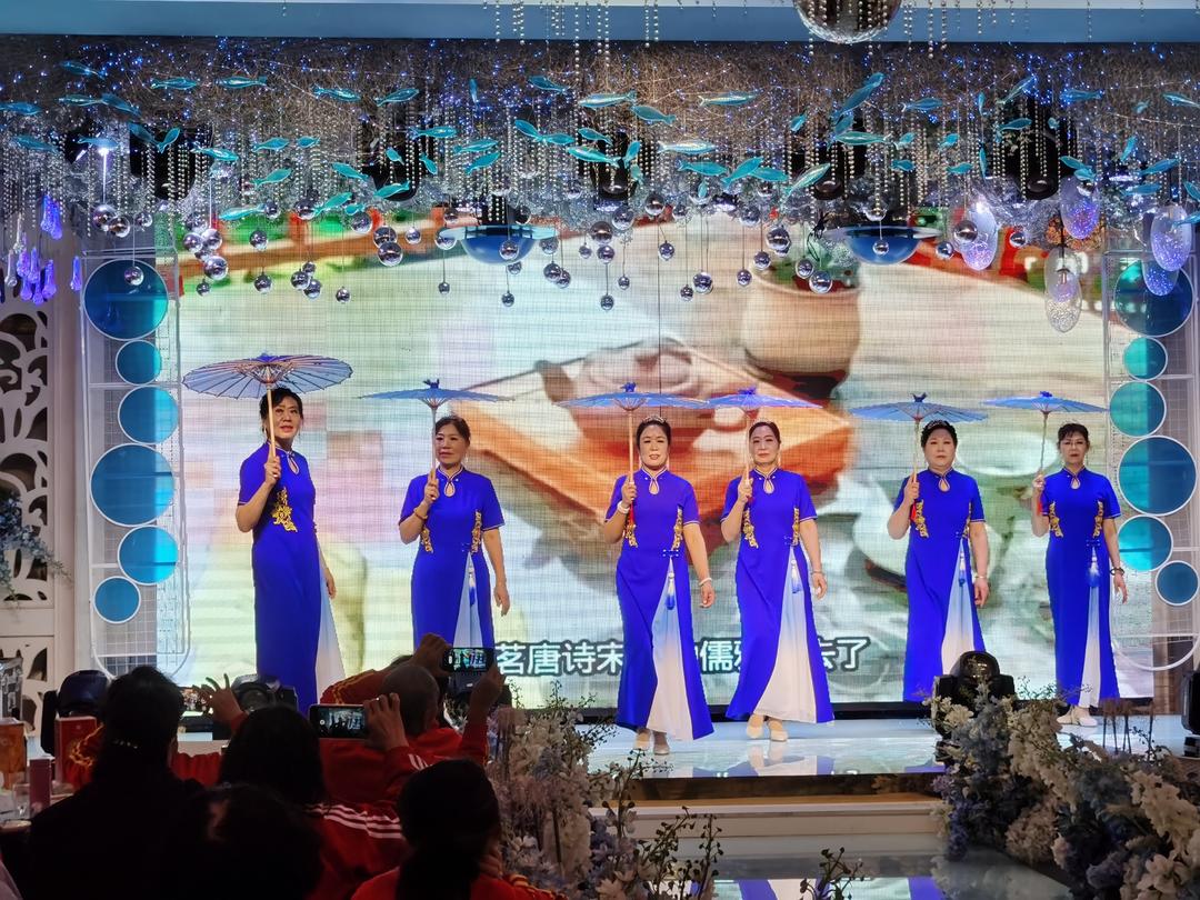 联欢会在开场歌舞《杏花落》中拉开帷幕,演员们以优美的舞姿和动人的旋律,瞬间点燃现场气氛。随后,旗袍秀《中国茶》以典雅的服饰与端庄的仪态,传递中华传统文化的深厚底蕴;歌舞《二十年后再相会》则以欢快的节奏,唤起居民对美好未来的憧憬。手舞《爱的奉献》通过肢体语言传递温情,歌舞《心归处》《神州舞起来》等节目以动感的旋律和整齐的编排,展现社区居民的团结与活力。