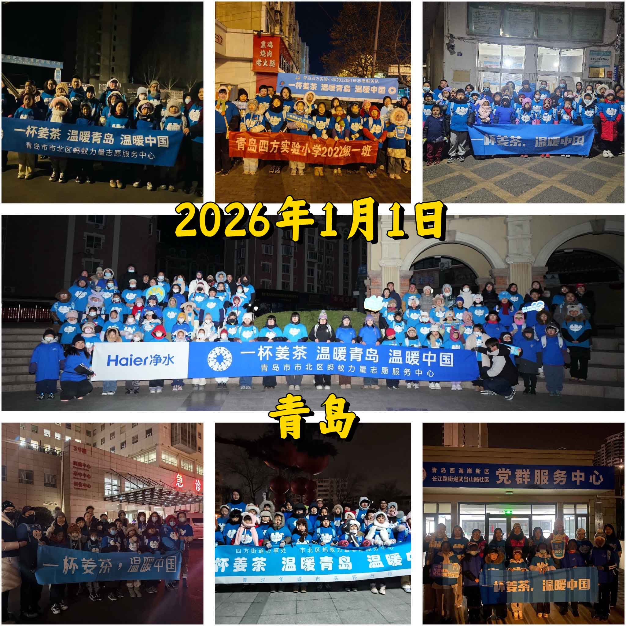 2026年1月1日凌晨5时,当城市还沉浸在新年静谧中,2026青少年城市关怀行动——“一杯姜茶 温暖青岛”文明实践活动如期开始。活动延续“大手拉小手”模式,由青少年家庭、大中小学生、爱心企业代表组成7支服务队500余名志愿者,带着亲手熬制的热姜茶与爱心卡片,在全市7个点位集结,为坚守岗位的城市守护者送上新年首份温暖和祝福,让寒冬因善意而升温,让城市因关怀而更有温度。