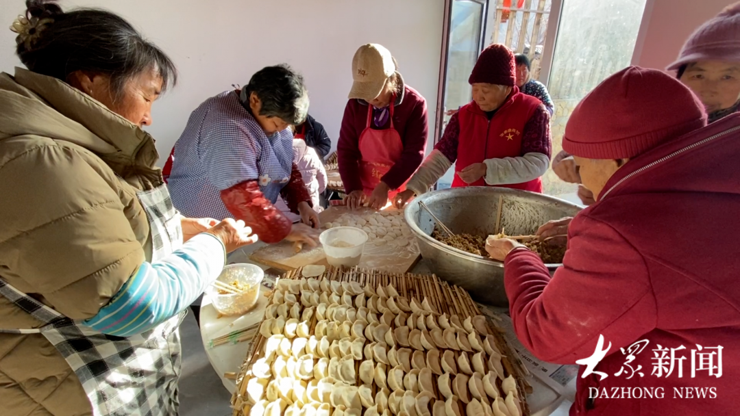 街道党工委书记徐刚、办事处副主任李瑞芳和乡亲们围坐一桌,共同品尝美味的水饺。“干部和群众在一个锅里吃饭,在一个桌上唠嗑,心就近了,事就好办了。”徐刚说道。这场自发组织、全村参与的饺子宴,本身就是在党支部引领下,村民共建、共治、共享的生动体现。“饺子皮擀的是民心,饺子馅包的是共识。饺子宴上,是邻里守望的烟火气和共同富裕的美好期待。”李瑞芳说道。