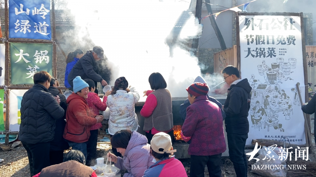 “今天有150多位村民和近百位游客来村里品尝饺子。去年一年,伴着免费大锅菜,我们村光老面馒头就卖了近2万块钱的。游客多了,村子周边的农家乐都跟着沾了光。每年民宿还能给村里带来35万多元的收入。大锅菜把‘流量’变成了‘留量’。今天办这顿饺子宴,就是告诉大伙儿,村民是主人,游客都是来走亲戚的‘自己人’。” 村党支部书记王振介绍道。村民们用最土的食材、最暖的情谊,拴住了人心,共同做大了“外石村”这个品牌。饺子馅里调的,既是乡村待客的实诚,更是共同富裕的盼头。
