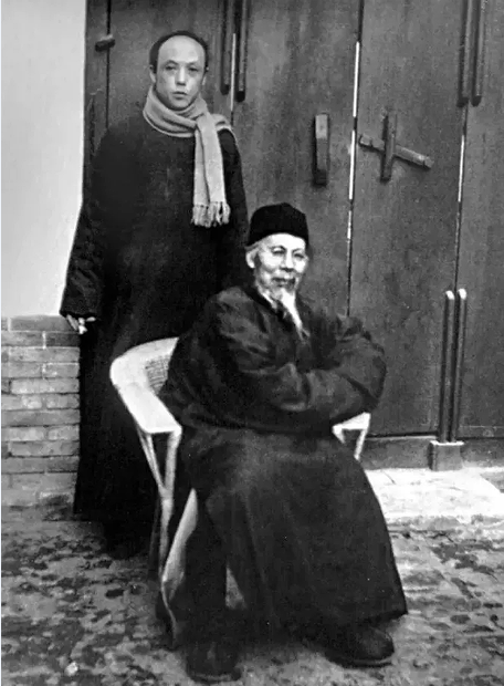1982年清明,李苦禅与许麟庐在齐白石墓碑前。
