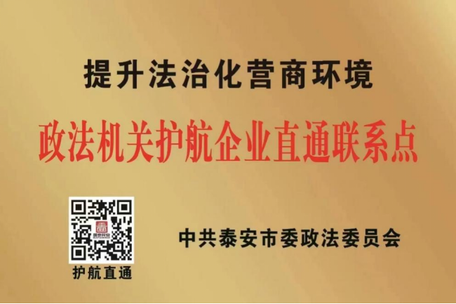 精准对接企业发展诉求。泰安市政法机关以“塑品牌、建队伍、搭平台”为抓手,全方位提升法治服务供给,为企业高质量发展注入强劲动能。选派52名政法骨干担任“政法服务专员”,在153家重点企业设立护航直通点,打造“法敢当”法治品牌,成功调解旅客矛盾纠纷202件、涉建安企业纠纷273件,1个典型案例入选最高人民法院案例库。组织“政法服务专员”深入企业一线,开展“移动式”法治服务1200余次,把专业法律服务送到企业“家门口”。高水平搭建法治化营商环境服务诉求二维码平台,面向全市重点企业、个体工商户等经营主体开展精准调研,法治化营商环境满意度攀升至98%,这一智慧化问需模式收获了企业的广泛点赞。