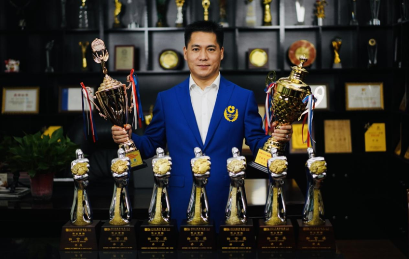 图:许庆与获得的荣誉奖杯合照