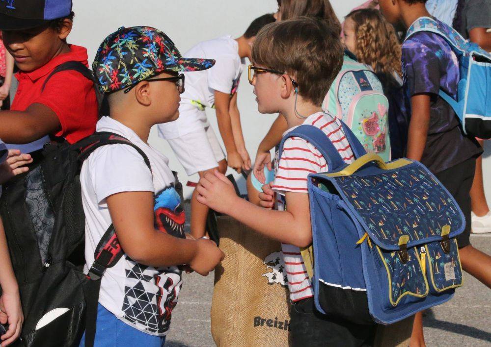 2022年9月1日,在法国南部小城昂蒂布,学生们抵达学校。