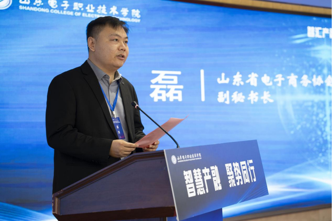 山东省电子商务协会副秘书长陈磊结合行业发展趋势发言,指出数字商务产业正迎来数智化转型的关键期,亟须产教双方精准对接。协会将发挥桥梁纽带作用,推动行业标准与教学标准无缝衔接,助力共同体成员单位把握产业机遇,实现协同发展。