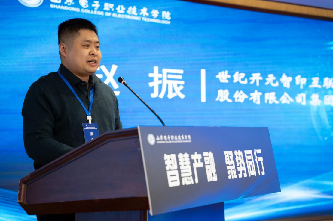 世纪开元智印互联科技集团股份有限公司党委书记赵振作为共同体牵头企业代表,分享了校企合作实践经验。赵振表示,将持续发挥龙头企业牵引作用,深化与院校在实训基地共建、核心课程开发、科研成果转化等方面的合作,推动产教融合制度化、规范化发展,为共同体建设注入产业动能。