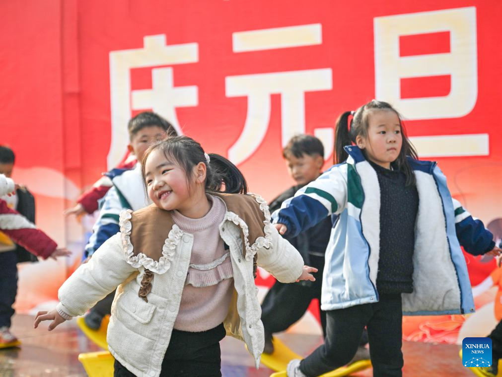 Children dance in a kindergarten in Shangqiu City, central China's Henan Province, Dec. 29, 2025. Various activities are held across China to celebrate the upcoming new year. (Photo by Wang Gaochao/Xinhua)