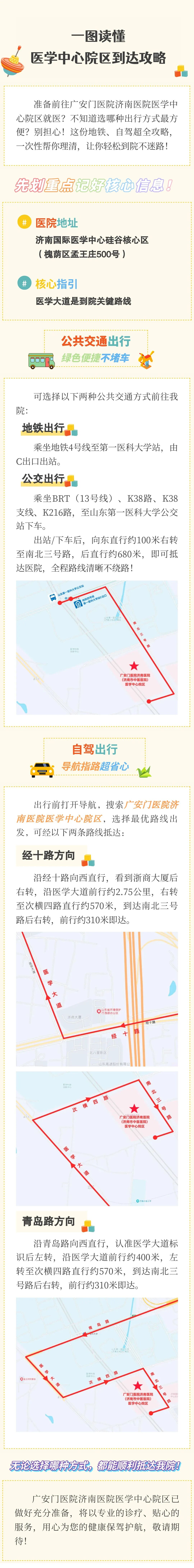 医学中心院区位于济南市槐荫区济南国际医学中心核心区域,山东第一医科大学以南,威海路以北,次横四路以南,南北三号路以西;可搜索导航“中国中医科学院广安门医院济南医院医学中心院区”。