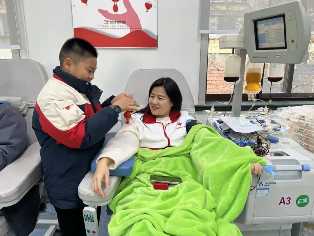 人群中,献血者高丽的身影格外引人注目。她表示:“我是一名红十字志愿者,也是济南市第105例造血干细胞捐献者。血液是生命的源泉,能够用自己的热血帮助他人,我感到无比自豪。希望更多人加入到无偿献血队伍中来,用我们的爱心为生命续航,让泉城济南充满温暖和希望”。仅2025年,高丽参与无偿献血22次,累计捐献血小板44个治疗量。