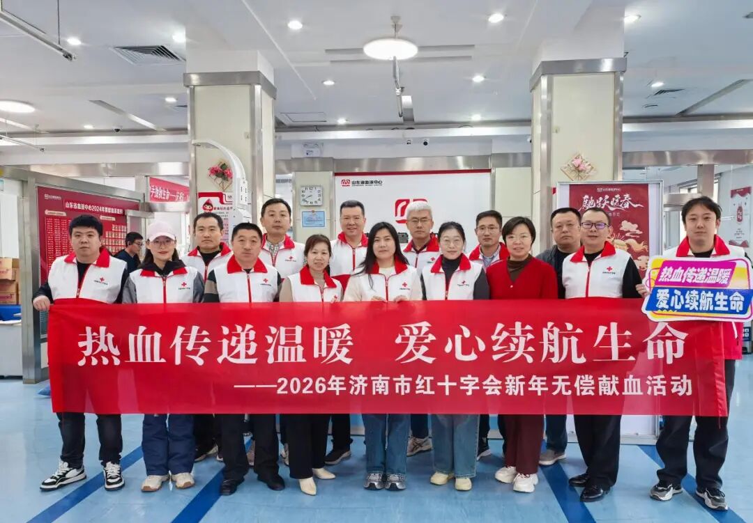2026年1月1日,济南市红十字造血干细胞捐献者服务队携手山东省血液中心举办“热血传递温暖 爱心续航生命”新年献血活动,以实际行动践行“人道、博爱、奉献”的红十字精神。本次活动共有15位志愿者成功献血,共计捐献27个治疗量的血小板。