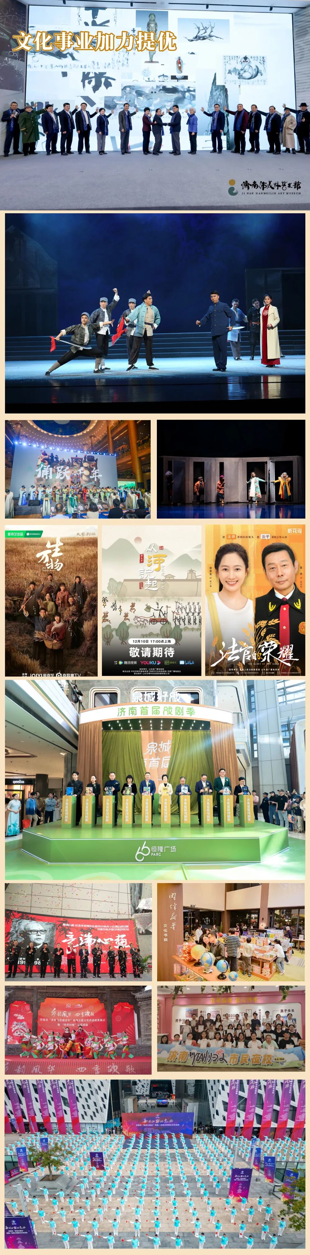 《济南市公共文化设施专项规划(2023-2035年)》纳入全市国土空间规划“一张图”。济南韩美林艺术馆开馆,济南剧院焕新开业,新建泉城书房9家、总数达70家,建成开放全国首个无感借阅闭环服务阅读空间,荣获全国最美公共文化空间大奖11项。创新打造“泉民大舞台”群众文化活动品牌,“泉民大舞台”优质文化资源直达基层的济南实践经验获全省推广。开展“泉城好戏”品牌演出等各类群众性文化活动7000余场,三德范村入选全国“村晚”示范展示点,“YEAH归人”泉民夜校入选全省文化和旅游高质量发展创新典型做法。“艺术青享”计划等3个案例入选山东省公共文化服务高质量发展典型案例。