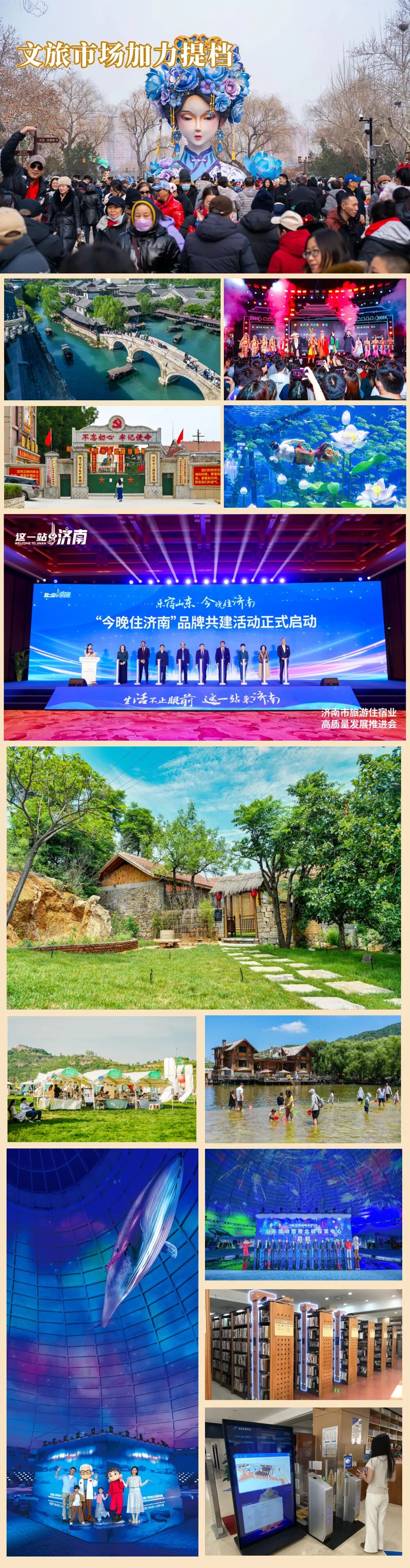 出台《关于进一步培育新增长点 繁荣文化和旅游消费的行动计划》。高质量承办“好客山东·美食争霸赛”启动仪式及首场赛事,依托“齐鲁1号”旅游专列开发泉城特色旅游产品。策划举办“冬游济南 欢乐贺年”“泉城好戏·济南首届戏剧季”“泉城夜八点·盛夏狂欢季”等促消费活动,引导银联、美团、携程、滴滴推出近8000万元消费补贴。深化“文旅+航空”“文旅+铁路”“文旅+公交”战略合作,推出“机票+门票”优惠套餐、泉城“十大主题游”线路等特色产品。