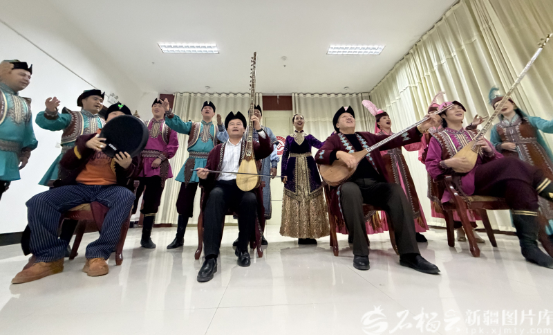 “每次站在舞台上,我都能感受到民歌的生命力。”后台化妆间里,曼苏尔江说,“小时候,父亲总抱着都塔尔坐在院子里弹唱,那些旋律就像春风一样,悄悄钻进我心里。” 曼苏尔江笑着说,从那时起,他就跟着父亲学唱民歌,都塔尔、弹拨尔、沙塔尔、手鼓……学会了多种民族乐器。