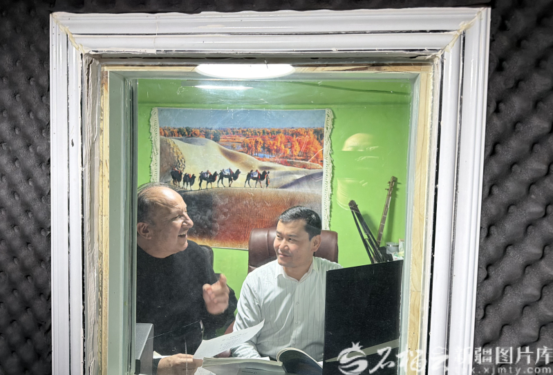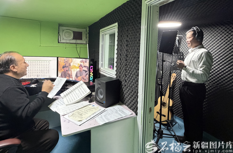 2025年 12月27日,曼苏尔江(右)与老师吐地在创作罗布淖尔民歌。