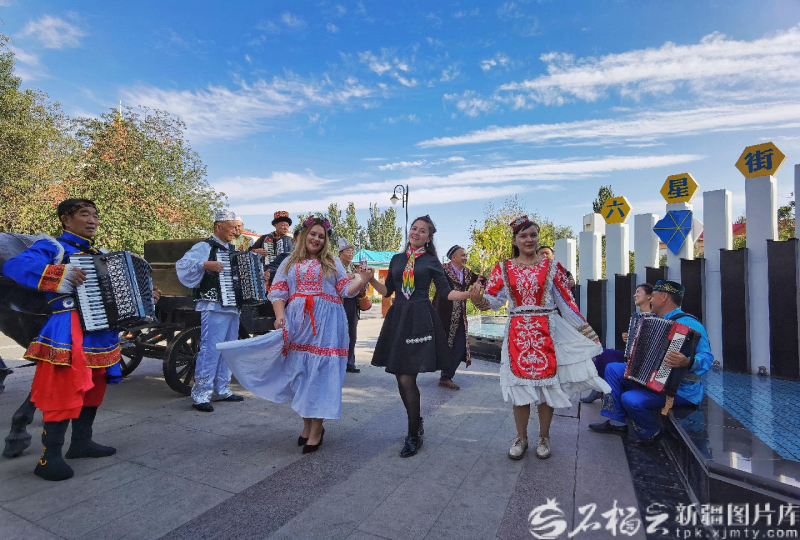 伊宁市各族群众在六星街音乐角跳起欢快的舞蹈(资料图)。 史恭敬 摄