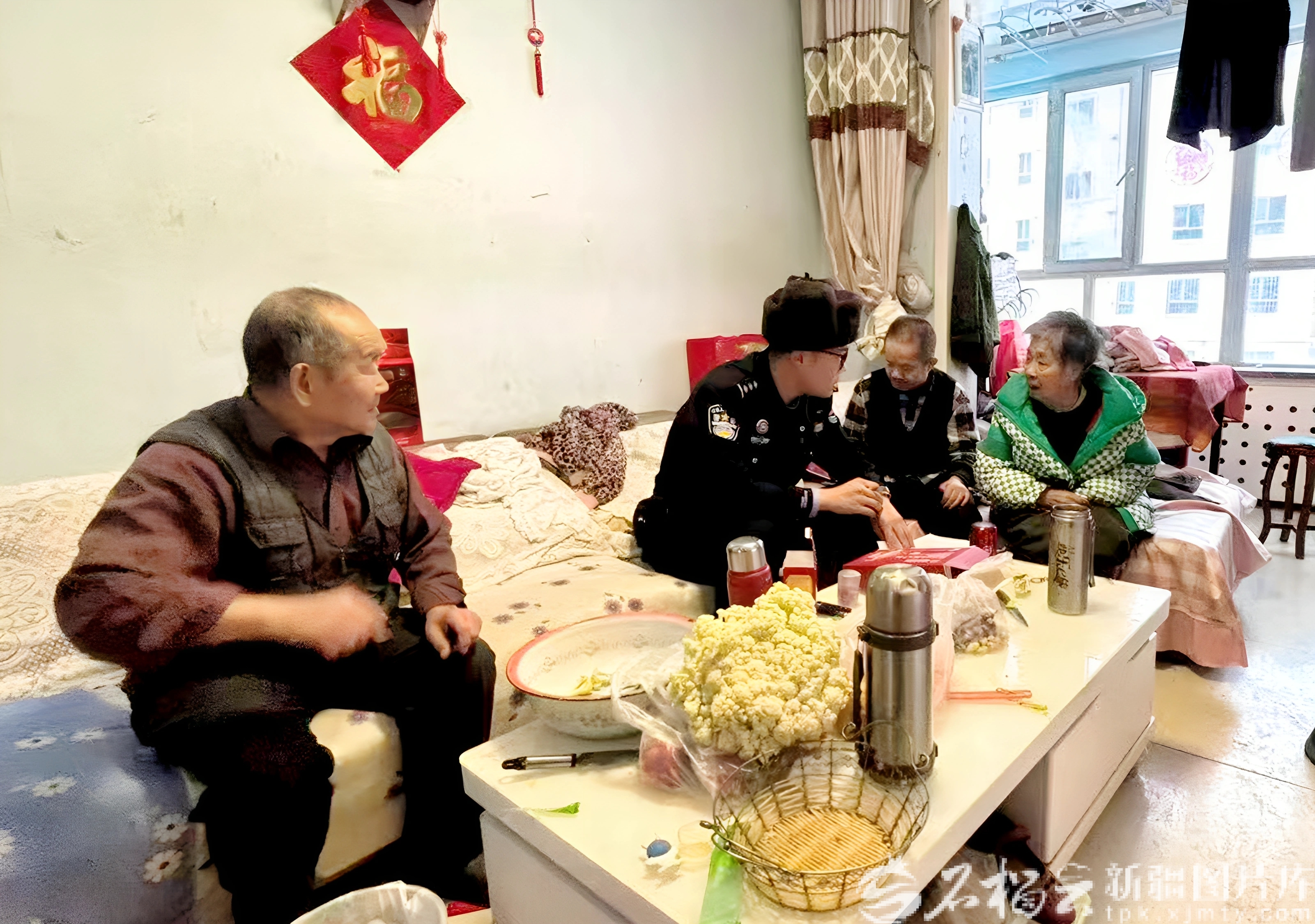 2026年1月1日,伊犁边境管理支队回庄边境派出所民警李燕昭看望残障人员徐鸿斌(右二)和其家人。王帅摄