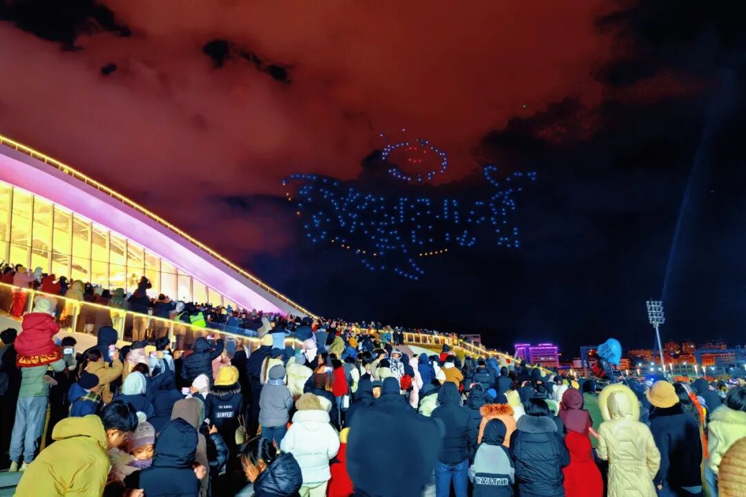 至海港湾举办了威海首届跨年梦幻光影节,以“光影+文化+互动”模式打造沉浸式体验。夜幕降临,备受瞩目的无人机灯光秀震撼上演,无人机腾空而起,在夜空中编织出游弋的鲸鱼、屹立的灯塔等特色图案,还勾勒出“新年快乐”“2026”“精致城市 幸福威海”等巨幅字样,浪漫的光影画卷引得大家纷纷驻足拍照打卡。