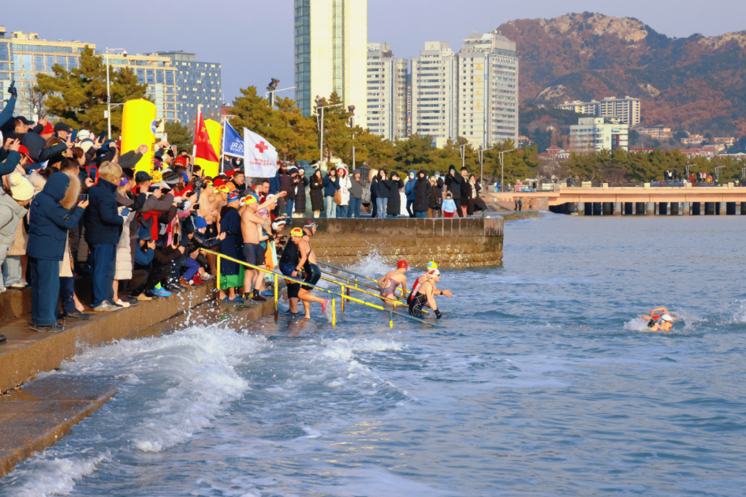 元旦当天,也是第31个全国冬泳日,在幸福门公园冬泳基地,“好运山东”2026年威海市全国冬泳日活动正式启幕。冬泳爱好者们精神抖擞,身着泳衣热身备战,随着一声令下,他们纵身跃入冰冷的海水,奋力挥臂、劈波斩浪,引得岸边观众阵阵喝彩。