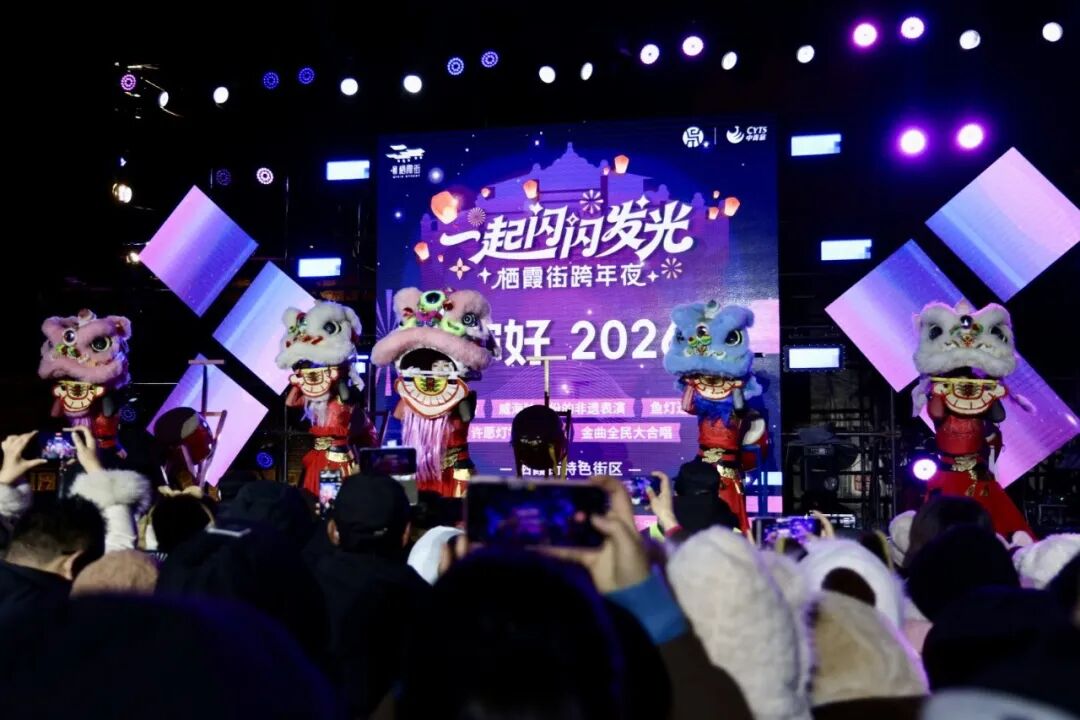 2025年12月31日晚7点半的栖霞街,“一起闪闪发光”冬日盛典将现代狂欢与非遗底蕴完美融合。国潮舞蹈《瑞狮鸣春》拉开演出序幕,《海阔天空》等金曲轮番唱响,古风演绎、爵士演奏、双人舞蹈接连登场,小丑互动更是将现场氛围推向高潮。
