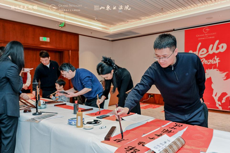 山东书法院常务副院长翟圣亮院长在致辞中讲到,书画艺术作为中华优秀传统文化的瑰宝,承载着千年文脉与民族精神,是我们民族独有的精神标识与审美寄托。济南环贸格兰云天国际酒店以中华优秀传统文化为载体,邀请书画艺术家齐聚一堂,将笔墨祝福融入旅居场景,这正是对文旅融合新模式的生动探索与实践。将书法艺术与新春纳福的传统习俗相结合,让每一份福袋都承载着笔墨温度与文化底蕴,让宾客在享受优质旅居服务的同时,近距离感受中华优秀传统文化的魅力。