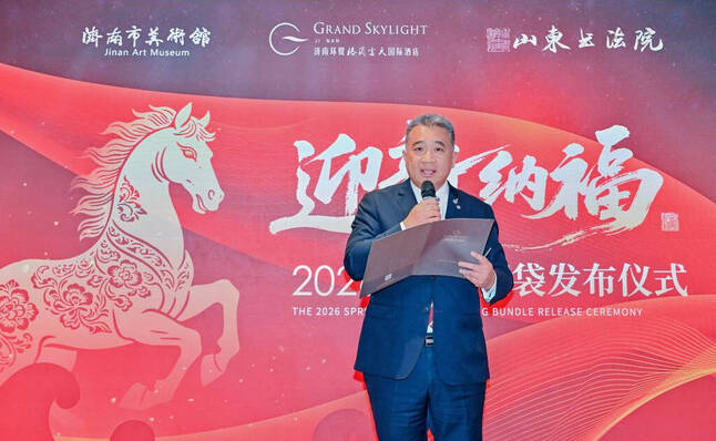 济南环贸格兰云天国际酒店总经理朱德箐在致辞中表示,济南环贸格兰云天国际酒店始终秉持传承与创新并重的理念,此次携手山东画院、济南美术馆举办新春福袋发布会,正是希望以传统文化为纽带,搭建起酒店与宾客沟通的桥梁。未来,济南环贸格兰云天国际酒店持续以“打造泉城 CBD 高端商务旅居体验”为目标,在提升服务品质的同时,不断融入文化元素,为大家打造更具创新性与人文关怀的旅居体验,彰显品牌的文化担当。