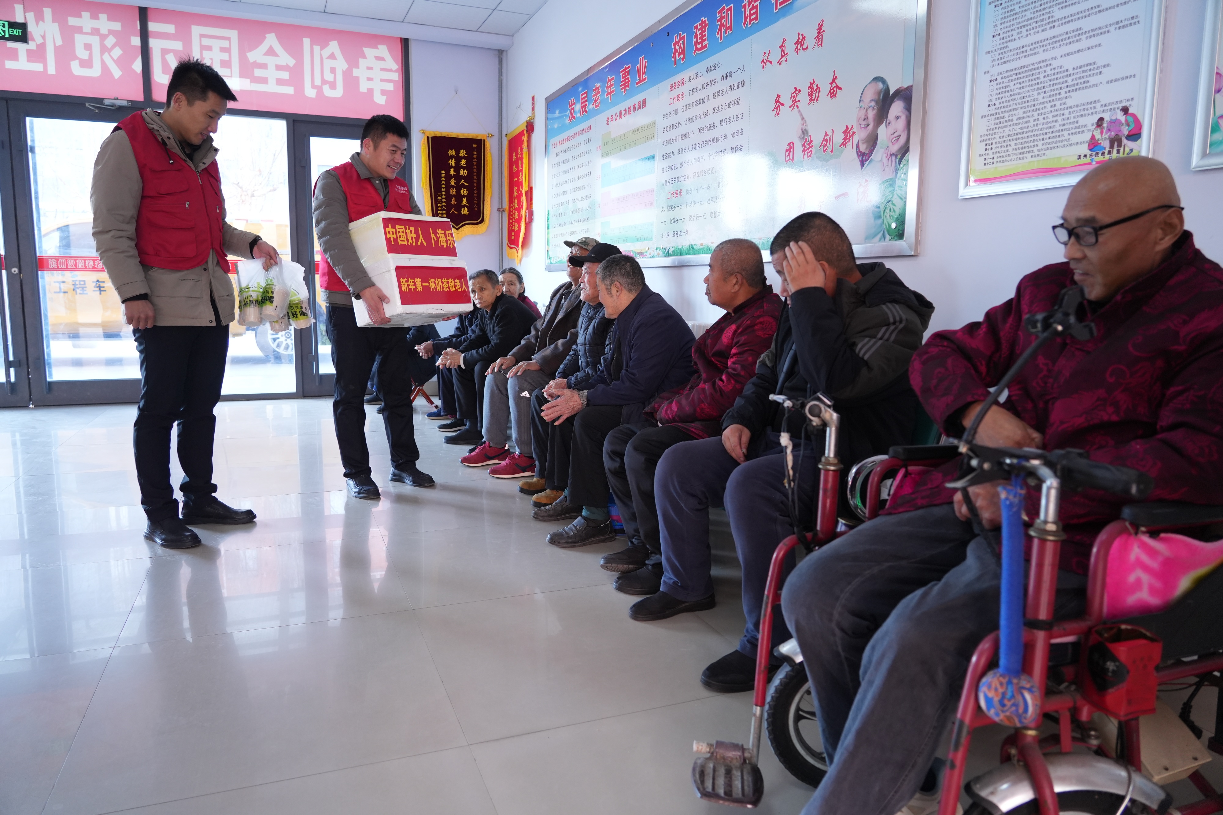新年第一杯奶茶敬老人 “中国好人”卜海乐为敬老院老人和环卫工人送上暖冬热饮