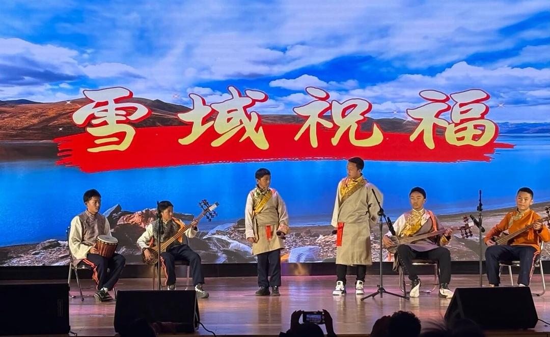 当天,济南西藏中学45名师生代表来到博山,联手博山中学开展“红石榴籽心相连 鲁藏少年共筑梦”民族团结共建活动。西藏男孩斯曲旦增在活动准备的现场,自发唱响家乡歌谣《次仁吉巴》,真挚的歌声打动全场,相关视频随后走红网络,被新华社等媒体转发,让这份鲁藏情谊跨越校园传递更远。“贡布酒歌”是西藏林芝(古称贡布)地区流传下来的一种古老酒歌,常在宴会开始时由主人向宾客献唱,以示欢迎和祝福。