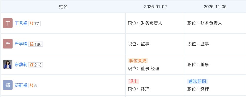 此外,郑群娣已不再担任宏胜集团经理,由宗馥莉担任。