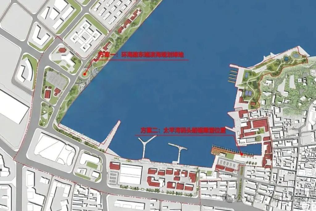 另一种方案选址为太平湾码头船锚雕塑现址。