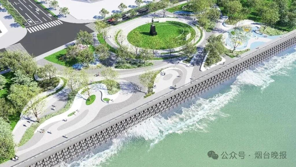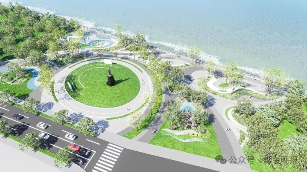 地块一面临海,南北为开阔的连续开敞空间,西侧为规划道路及海上世界展示中心,视野开阔、可视性好,可结合雕塑尺度灵活打造雕塑主题空间,作为区域核心景观。未来,区域规划为大规模连续的滨海公共活动空间,临近大悦城、芝罘湾广场、烟台站等开放场所,展示条件优越,公众参与度更好。另外,此处还具备人行流线流畅,与周边开放空间衔接顺畅,车行抵达便利等有利条件,雕塑落成后不会受城市开发改造影响而二次搬迁,具备永久性条件。