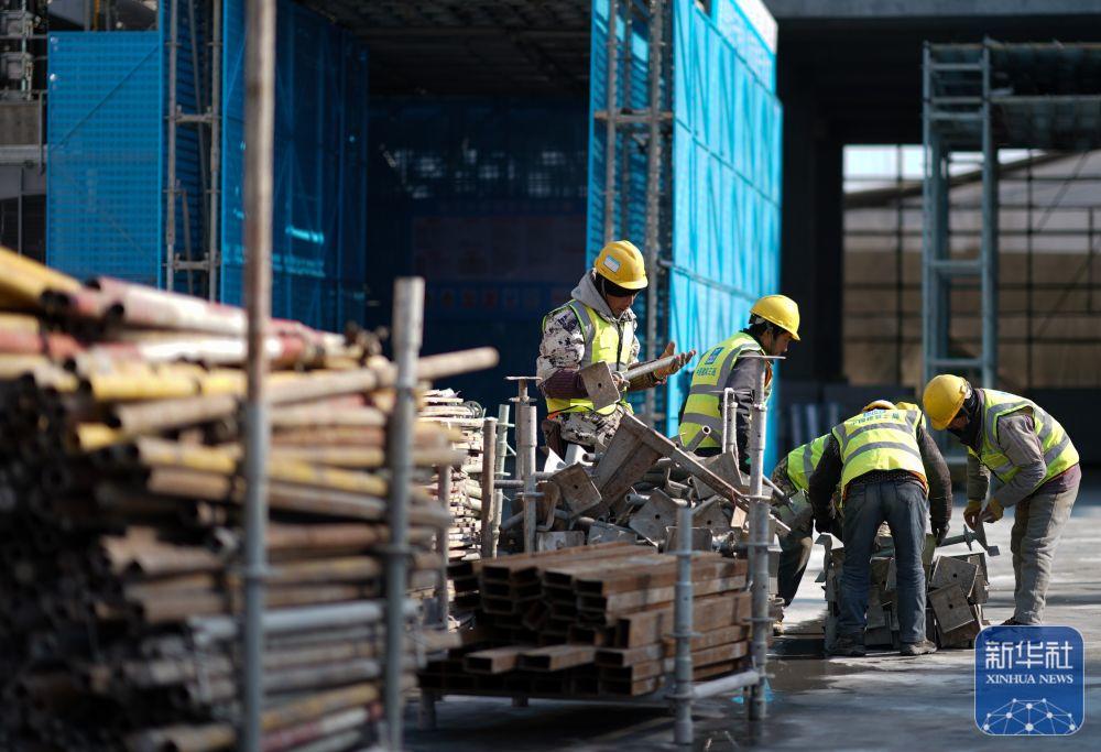 ↑ 1月2日,工人在位于上海的中建三局一公司灿瑞科技全球芯片研发中心项目工地施工。新华社记者 丁汀 摄