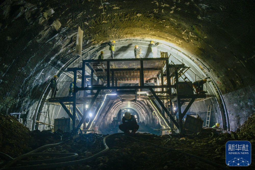 ↑ 1月2日,工人在湖南省永州市零道高速双丰隧道施工。新华社发(蒋克青摄)