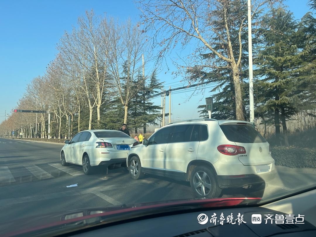 1月3日,情报员“云游地球”向齐鲁晚报官方客户端齐鲁壹点情报站发来报料,潍坊潍水东街与新钢二路交叉口两辆私家车发生追尾。