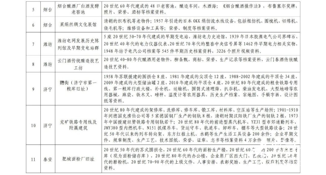 近日,山东省工业和信息化厅发布《关于公布第二批山东省工业遗产名单的通知》。根据《山东省工业遗产管理办法》和《山东省工业和信息化厅关于开展第二批山东省工业遗产申报认定工作的通知》,经项目单位自愿申报、所在地县级人民政府同意、各市工业和信息化局推荐、形式审查、专家论证、现场核查、综合评价和网上公示等环节,确定了第二批山东省工业遗产名单。