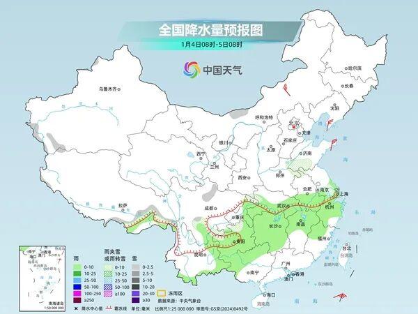 具体来看,中央气象台预计,今天,西北地区东南部、河南西部、湖北西部、川西高原北部、贵州西北部、青海南部、西藏南部和东部等地部分地区有小到中雪或雨夹雪;四川盆地、湖北大部、湖南北部、贵州中东部、云南大部等地部分地区有小雨,其中,云南南部等地部分地区有中雨。