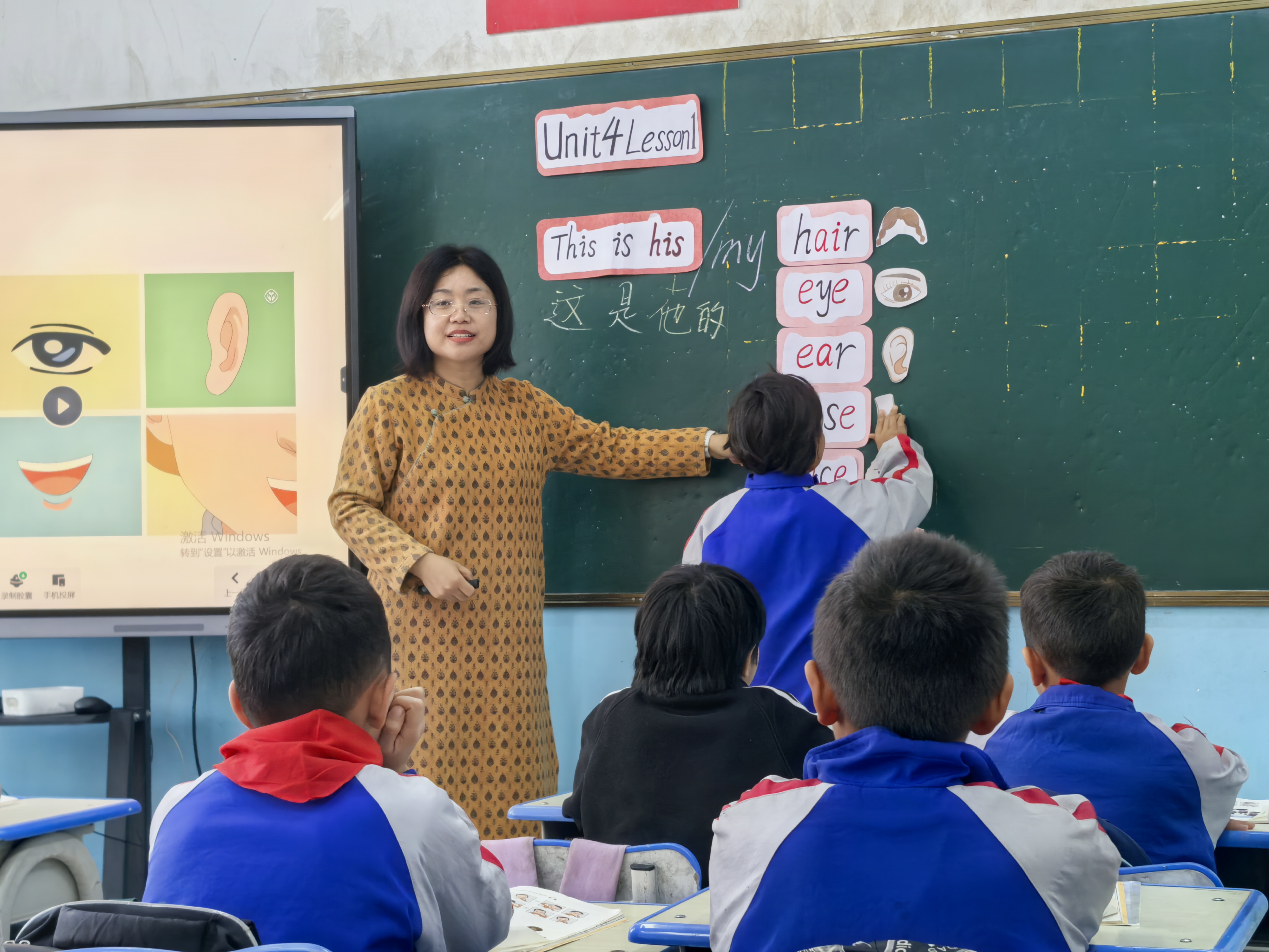 李叶老师的英语课聚焦“身体部位”主题,通过趣味儿歌、肢体模仿、互动游戏等多样化形式,引导孩子们在轻松愉悦的氛围中认识“mouth”“nose”“face”等基础词汇。孩子们热情高涨,积极参与课堂互动,主动跟随老师朗读、模仿,原本陌生的英语知识在趣味体验中变得通俗易懂。