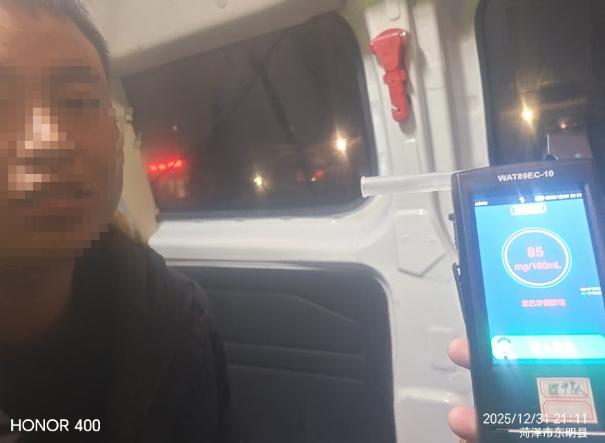 2026年1月1日13时许,在单县高高路高老家初级中学附近路段酒驾查处行动中,单县公安局交管大队民警对一辆白色小型轿车进行检查时,发现驾驶人面部潮红,有较大的酒味,随后对其进行呼气式酒精检测,测试结果为91mg/100ml,疑似醉酒后驾驶机动车。随后,执勤民警依法对其进行血液酒精含量检测。
