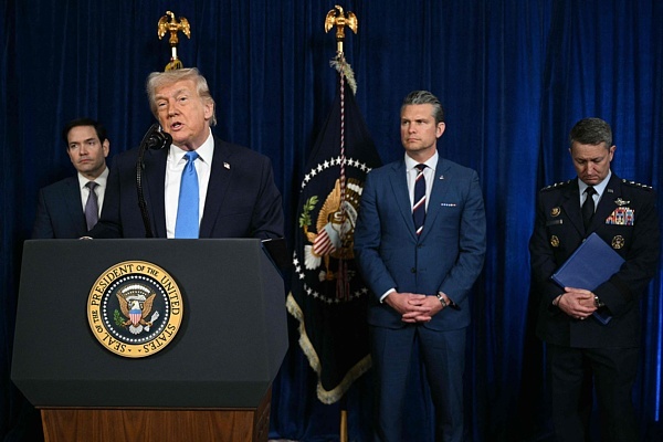 当地时间1月3日,美国总统特朗普、国防部长赫格塞思等官员在佛罗里达州海湖庄园就美军对委内瑞拉动武、将委内瑞拉总统马杜罗控制并移送出境举行记者会。